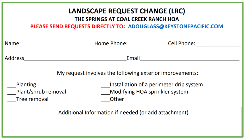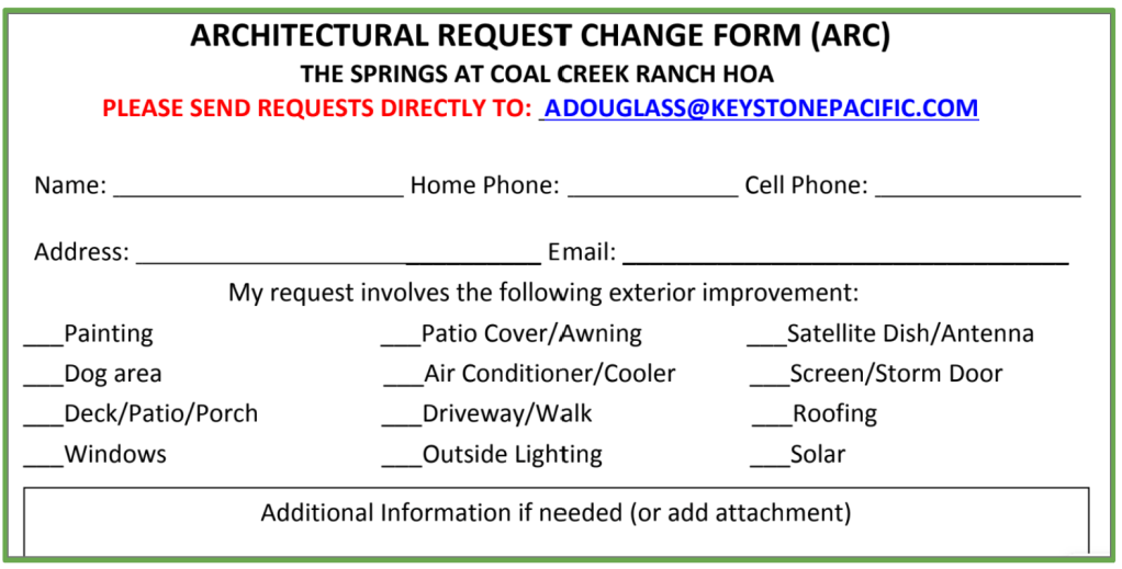 Resources & Forms View Guidelines Handbook (2025) View Architectural Review Committee Form (2025) View Landscape Request (2025) View Sherwin Williams Color Book Click Here to Print The Springs Community Map Like Loading...